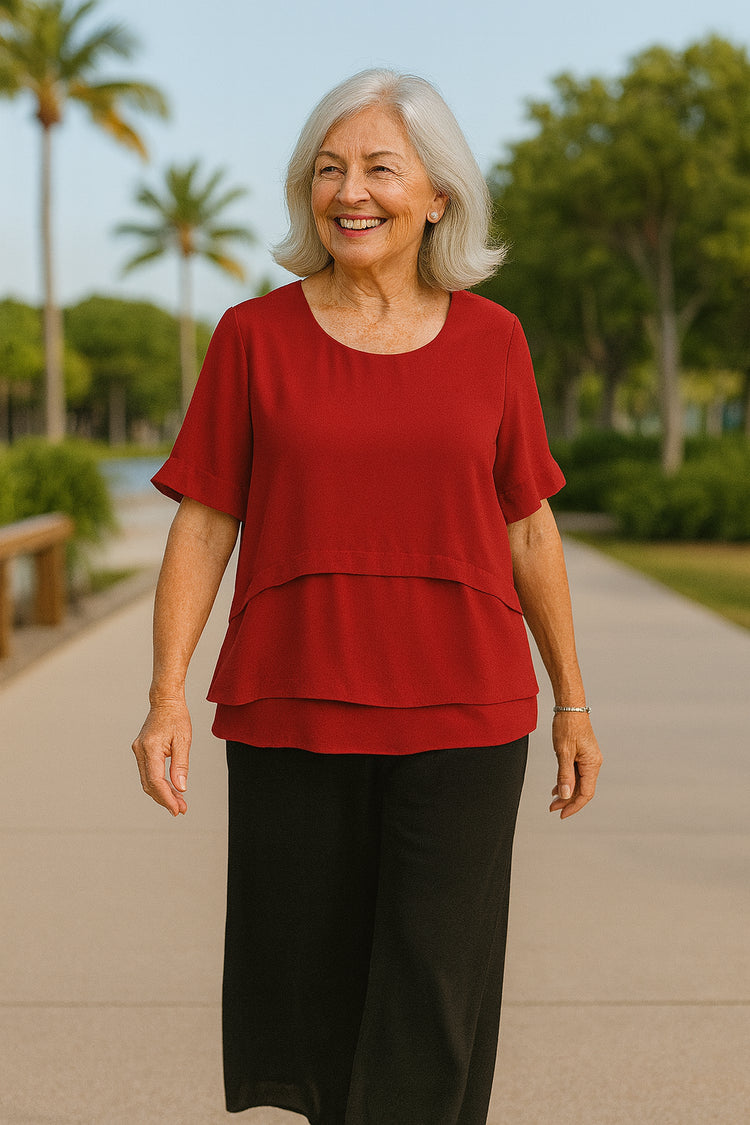 • Soft layered design — adds gentle coverage and drapes gracefully over tummy & hips
