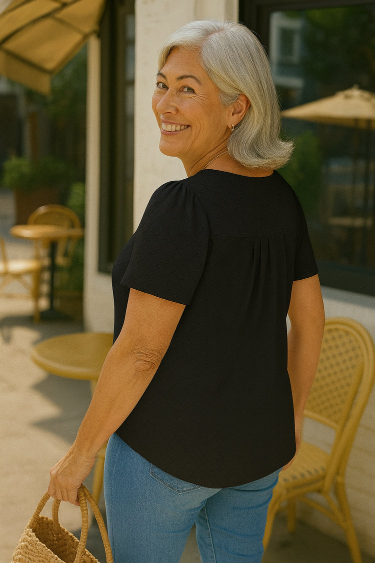 "Finally, a top that doesn’t cling or make me feel frumpy. I wore it to brunch with my friends and for once I didn’t have to tug at my sleeves or worry about the fit. It’s light, flattering, and made me feel put-together without trying too hard.” — Margaret T. (61), Brisbane QLD