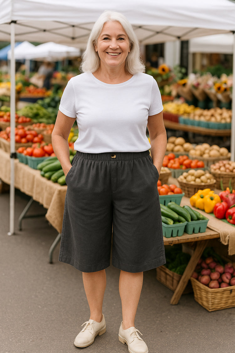 • Pairing with linen blouses, relaxed tees, or flowy tops